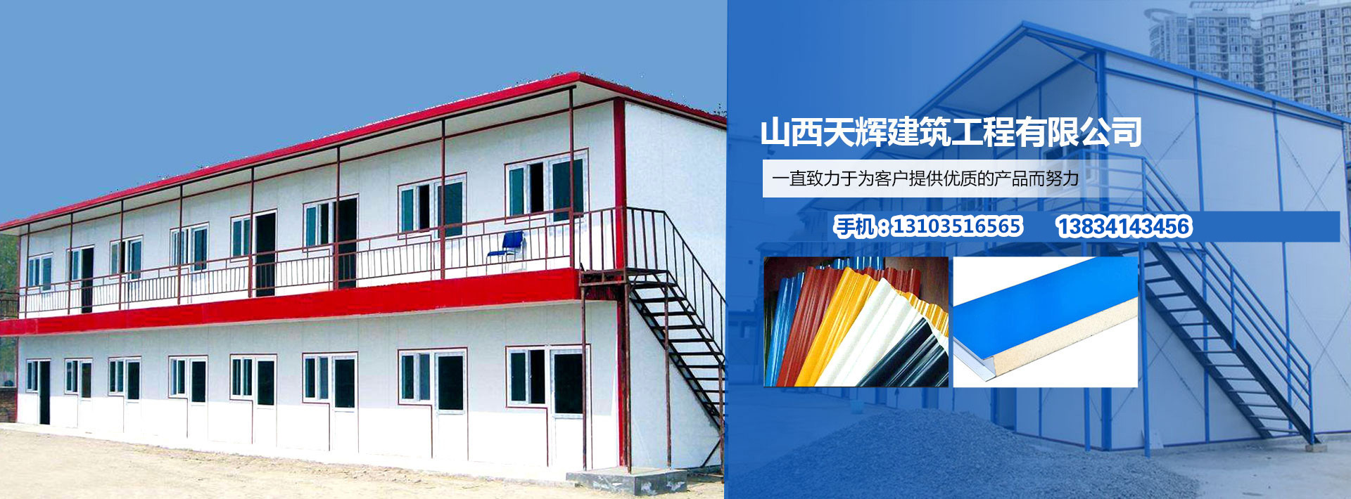 山西天輝建筑工程有限公司是專業(yè)從事彩鋼板生產,鋼結構、住人集裝箱、活動房設計和專業(yè)安裝、維護的一家企業(yè),我們銷售的產品引進全自動彩鋼夾芯板流水線以銷售多種規(guī)格的彩鋼復合夾芯板...